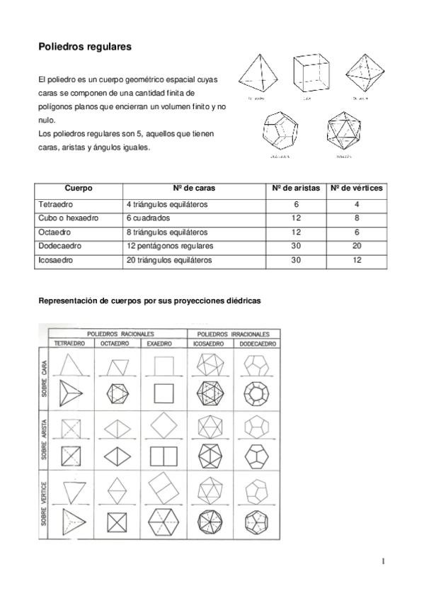 Apuntes Poliedros regulares. Diédrico. 1º y 2º de Bachillerato Madrid