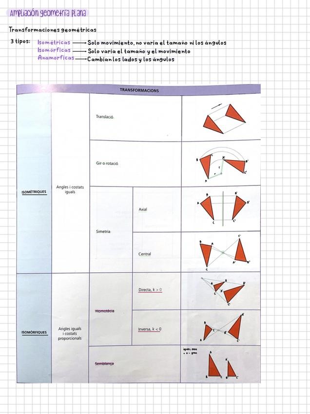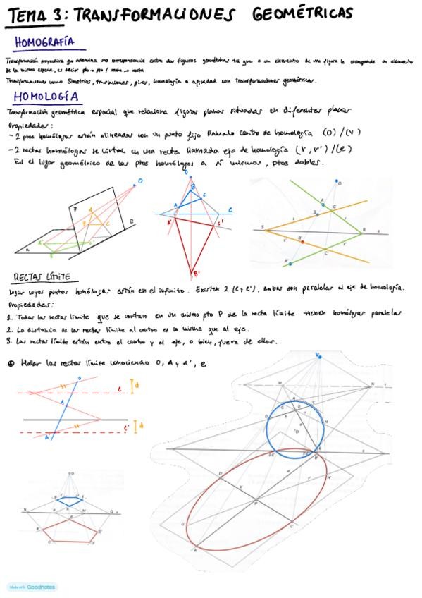 Transformaciones Geométricas (Homología y Afinidad) Resumen con ejercicios tipo
