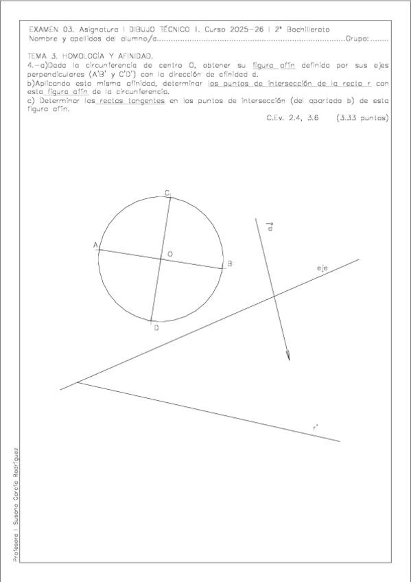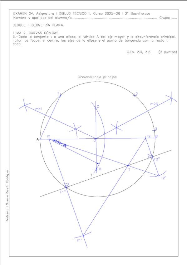 Examen Global de Geometría Plana (Tangencias, Curvas Cónicas, Homología y Afinidad) Dibujo Técnico II