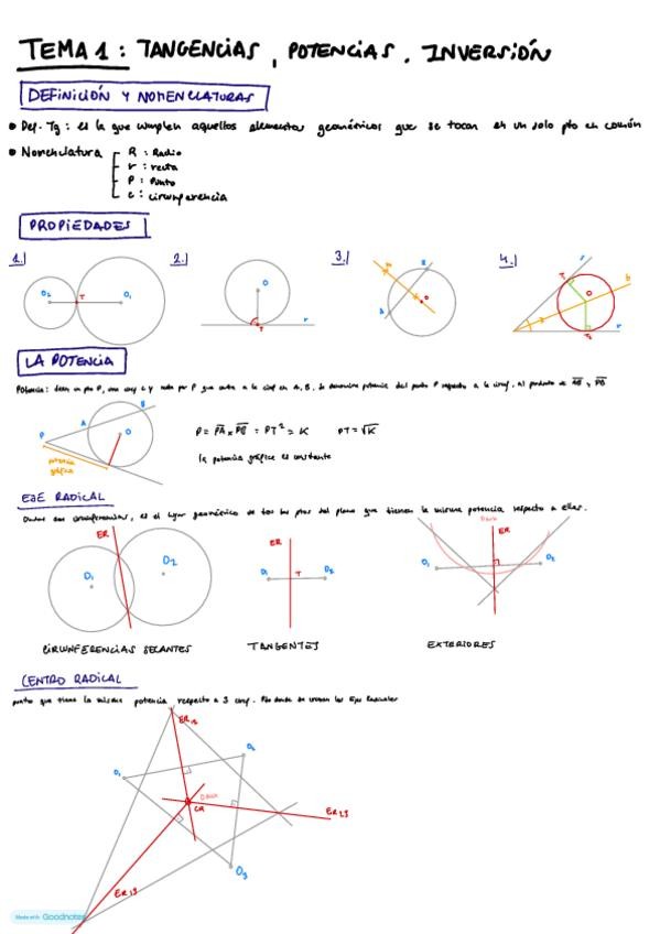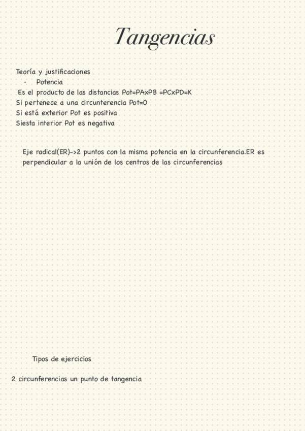 Resumen de Tangencias, Potencias e Inversiones con ejercicios tipo