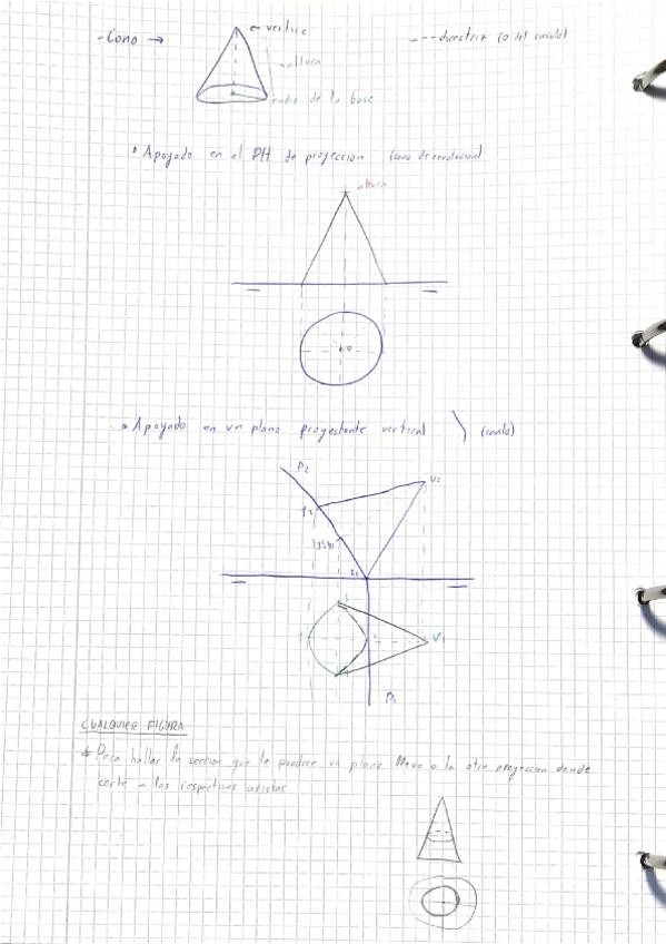 Ejercicios con explicación del cono, cilindro, prisma y pirámide en sistema diédrico