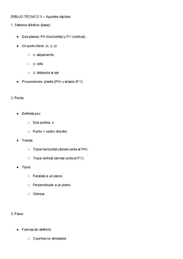 Apuntes del primer apartado de sistema diédrico de la universidad laboral