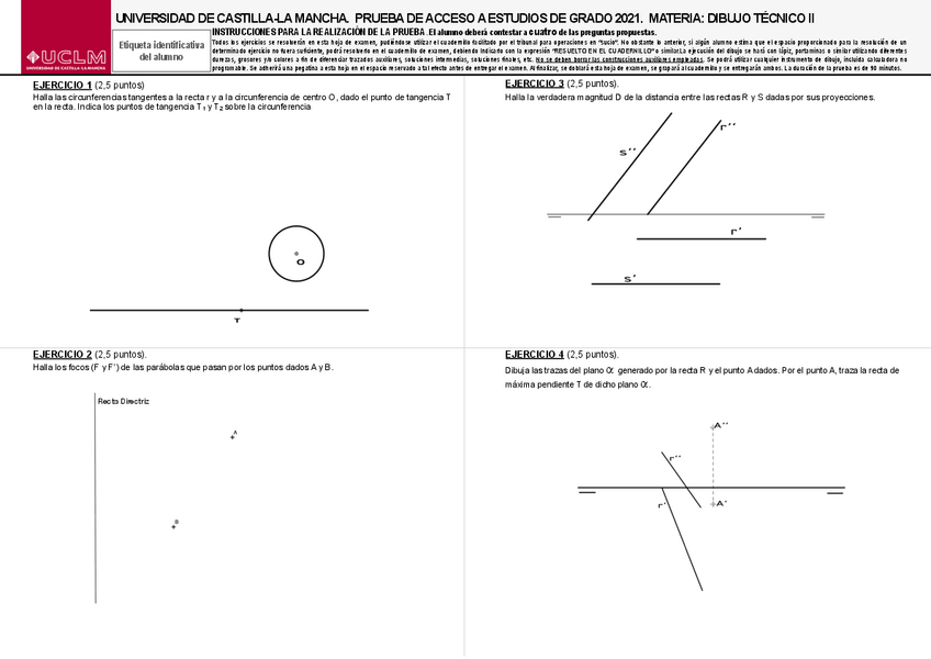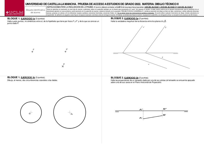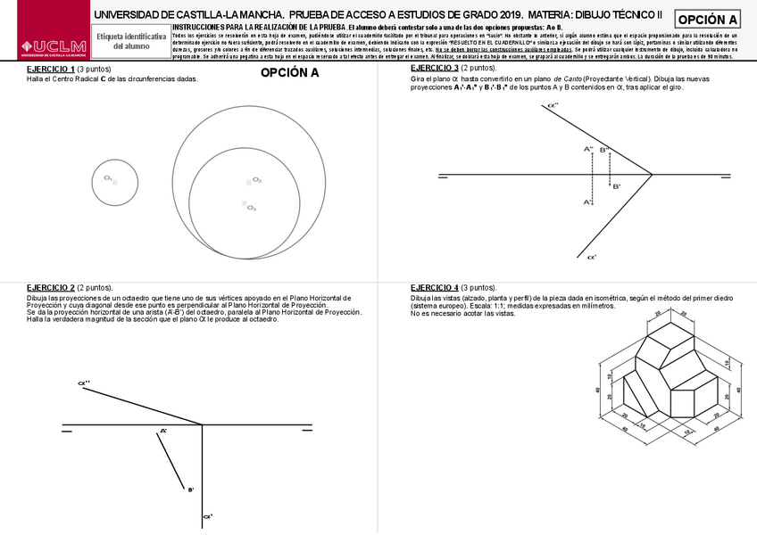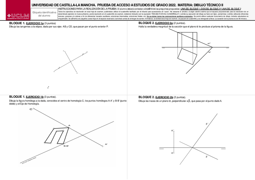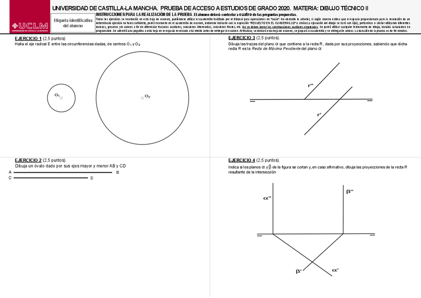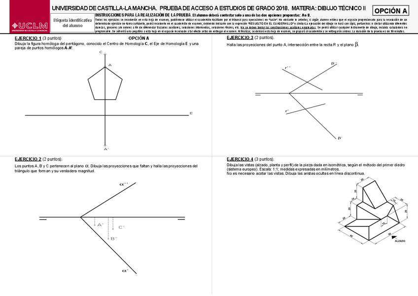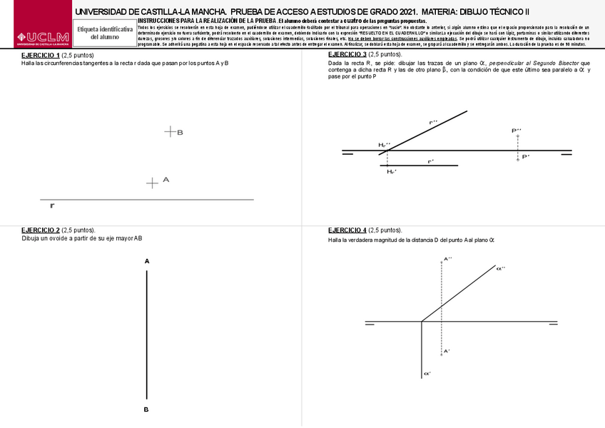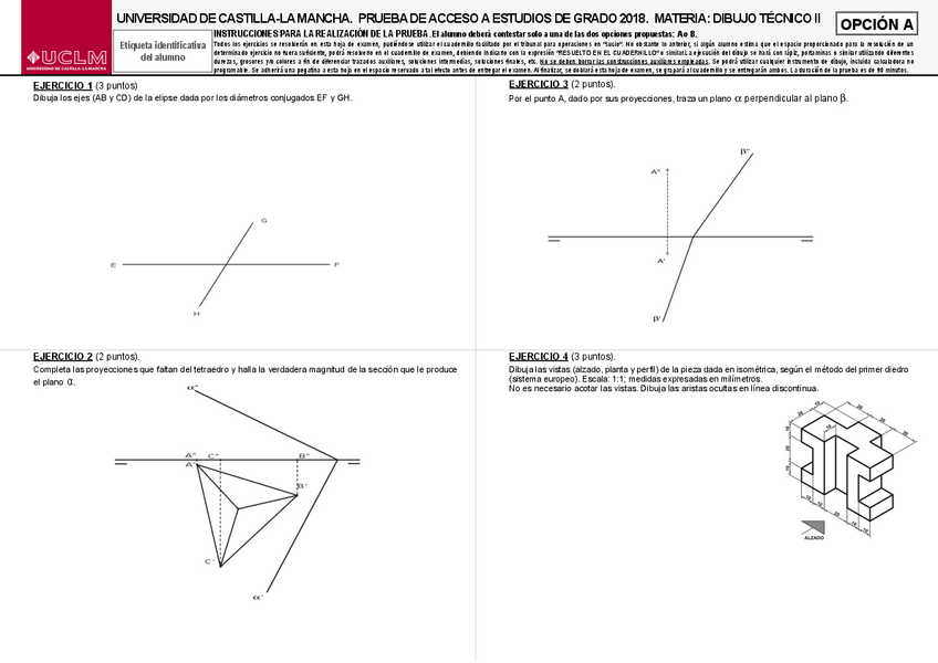 Variedad de EXÁMENES RESUELTOS de DIBUJO TÉCNICO II de EVAU UCLM de años anteriores perfectos para repasar.