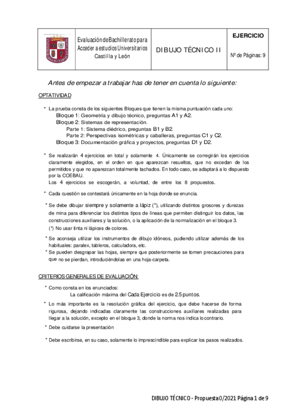 Temas Dibujo Técnico para Selectividad
