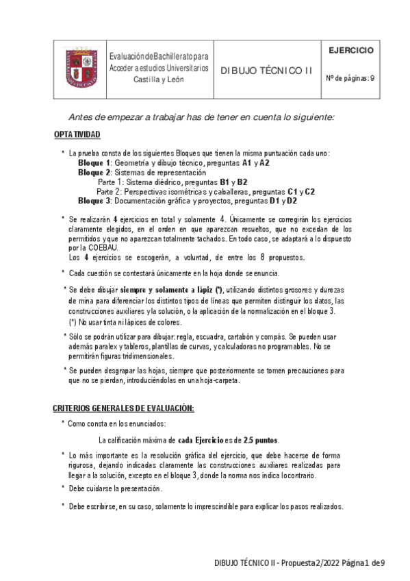Exámenes Dibujo Técnico II EBAU Castilla y León 2022