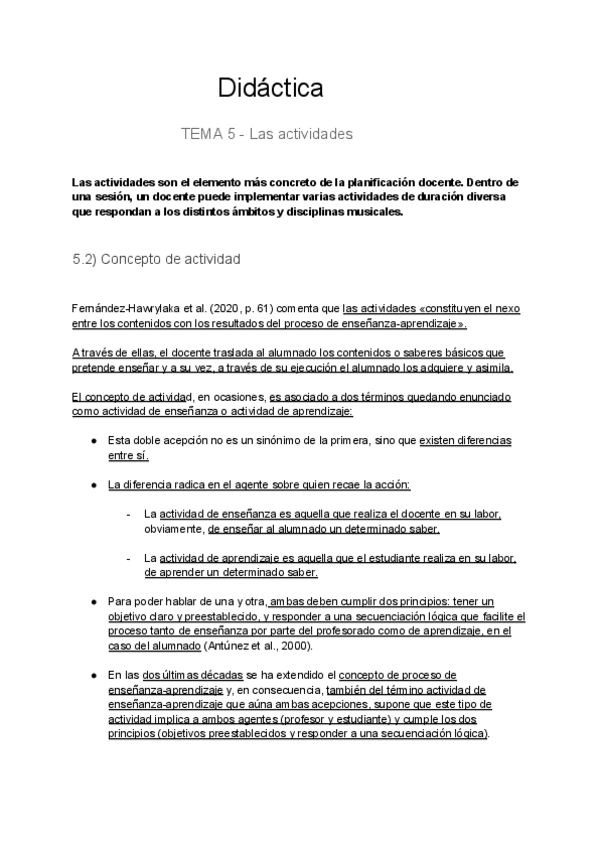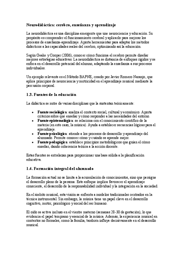 Resumen del Tema 1: Aproximación al concepto de didáctica en la música