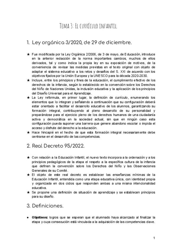 Resumen de los artículos 1-25 para la asignatura de Didáctica de la Educación Infantil