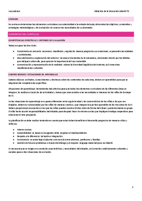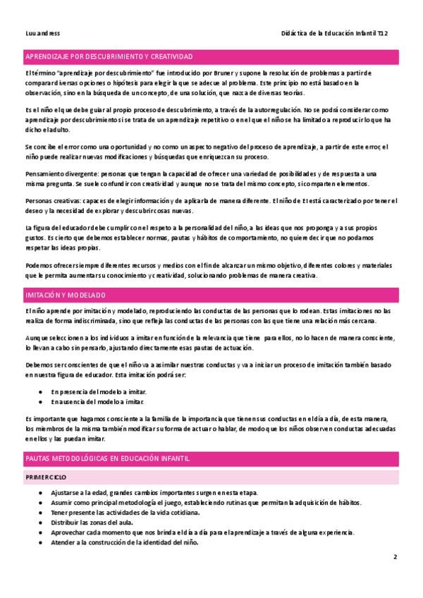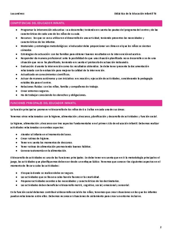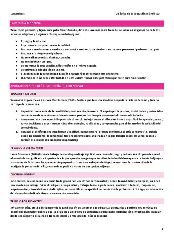 Resumen de la unidad 2 de la asigantura de Didáctica de la Educación Infantil para Grado Superior de Educación Infantil