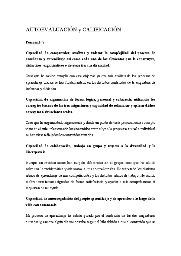 He publicado nuevos otros de 1º Didáctica de la Educación Infantil: AUTOEVALUACION-y-CALIFICACION.pdf