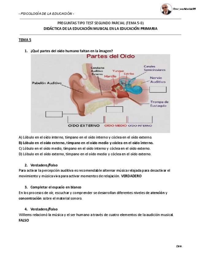 He publicado nuevos examenes de 1º Didáctica de la Educación Musical en la Educación Primaria: Preguntas-parcial-musica-2.pdf