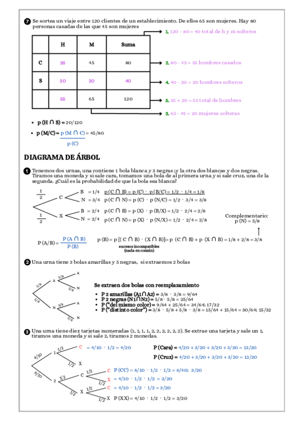 Ejercicios de probabilidad, usando fórmulas y diagramas de árbol