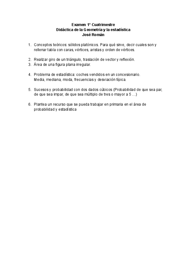 He publicado nuevos examenes de 3º Didáctica de la Geometría y la Estadística: EXAMEN-DICIEMBRE.pdf