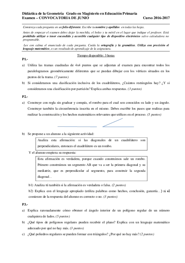 He publicado nuevos examenes de 3º Didáctica de la Geometría: EXAM JUNE 2017 ENGLISH VERSION.pdf