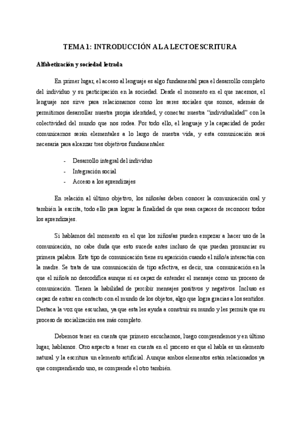 TEMA 1: Introducción a la lectoescritura. Aprendizaje de la lectoescritura.