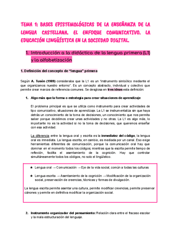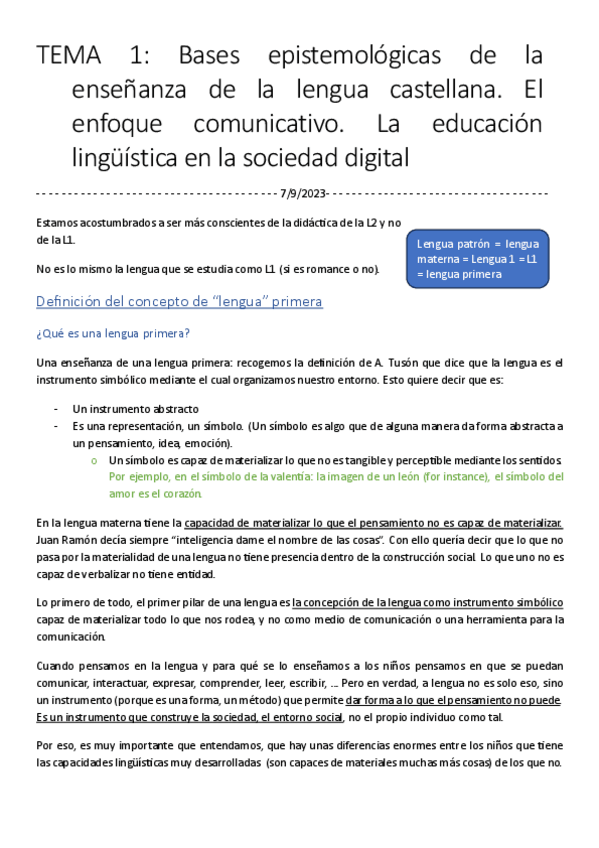 He publicado nuevos apuntes de 3º Didáctica de la lengua castellana en primaria: Tema-1.pdf