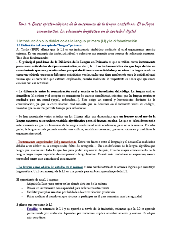 He publicado nuevos apuntes de 3º Didáctica de la lengua castellana en primaria: TEMA-1.pdf