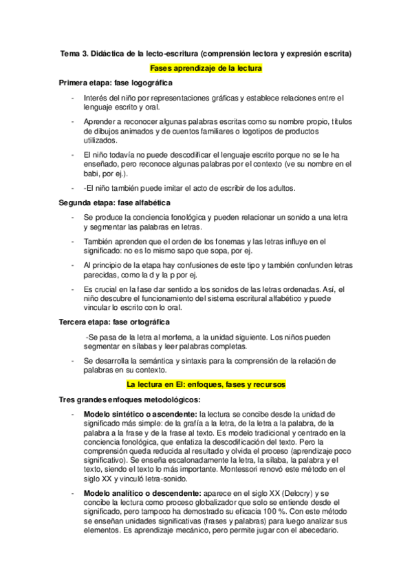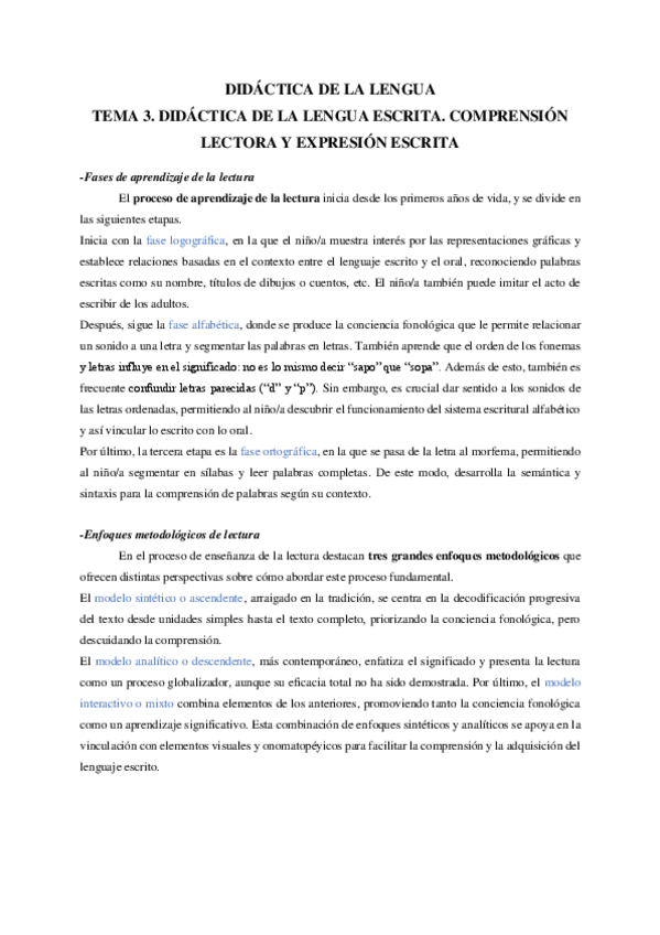 Tema 3. Didáctica de la Lengua Escrita