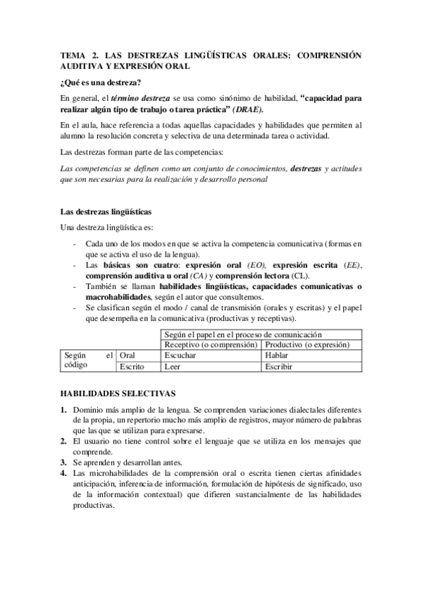 Tema 2. Didáctica de las Destrezas Orales