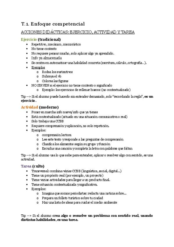 Apuntes de clases orales - enfoque competencial: Ejercicio, actividad, tarea Competencias Base-CCBB (que en realidad son competencias clave de la LOMLOE pero ella les llama mal)
