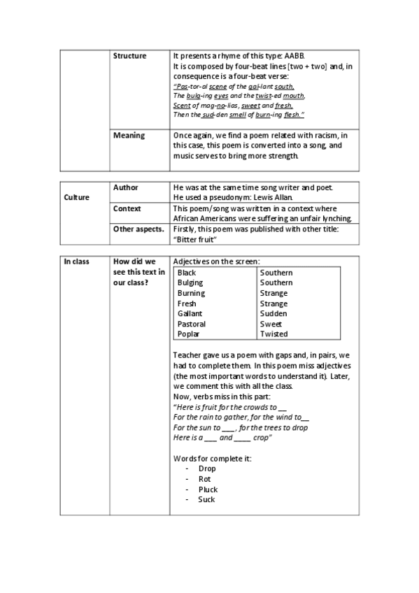 He publicado nuevos apuntes de 4º Didáctica de la Lengua Inglesa: STRANGE FRUIT.pdf