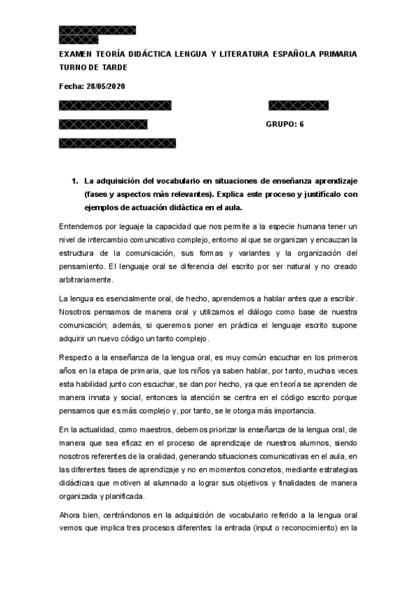 He publicado nuevos examenes de 3º DIDÁCTICA DE LA LENGUA Y LA LITERATURA ESPAÑOLA PARA LA EDUCACIÓN PRIMARIA: examen-lengua-2020.pdf