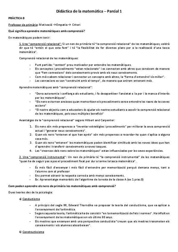 Pràctica 0. Ensenyar les matemàtiques amb comprensió