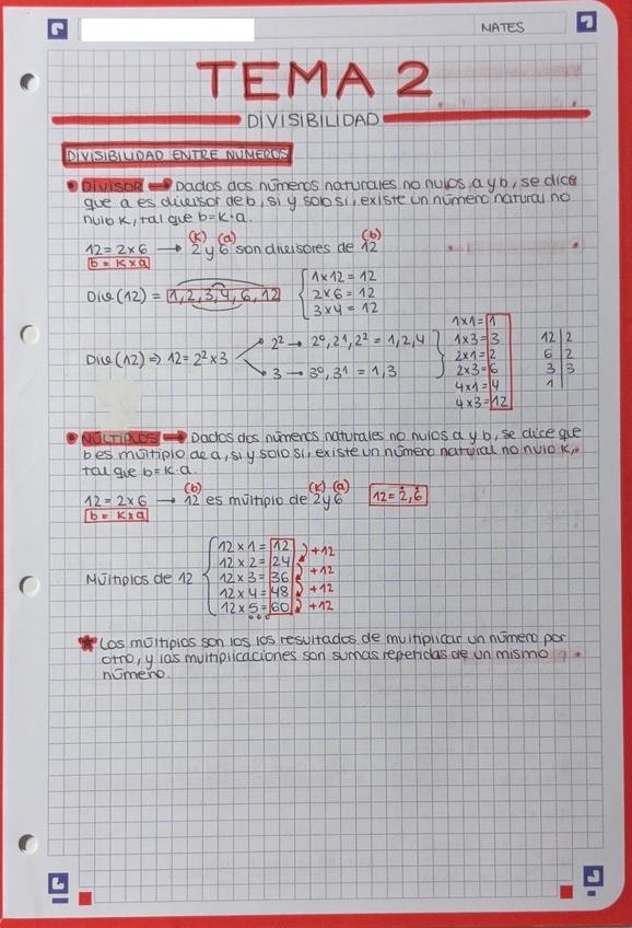 Apuntes T2 Divisibilidad de N de la asignatura de Didáctica de la Matemática