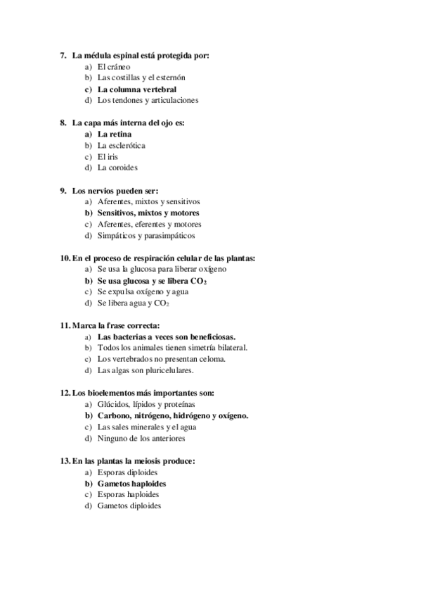 Todas las posibles preguntas que pueden caer son cortas con varias opciones a elegir una, en algunas preguntas aparecen los enunciados con todas las opciones posibles y en otras preguntas solo aparecen los enunciados y la única respuesta correcta.