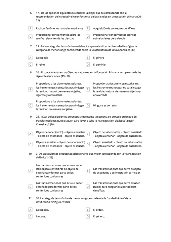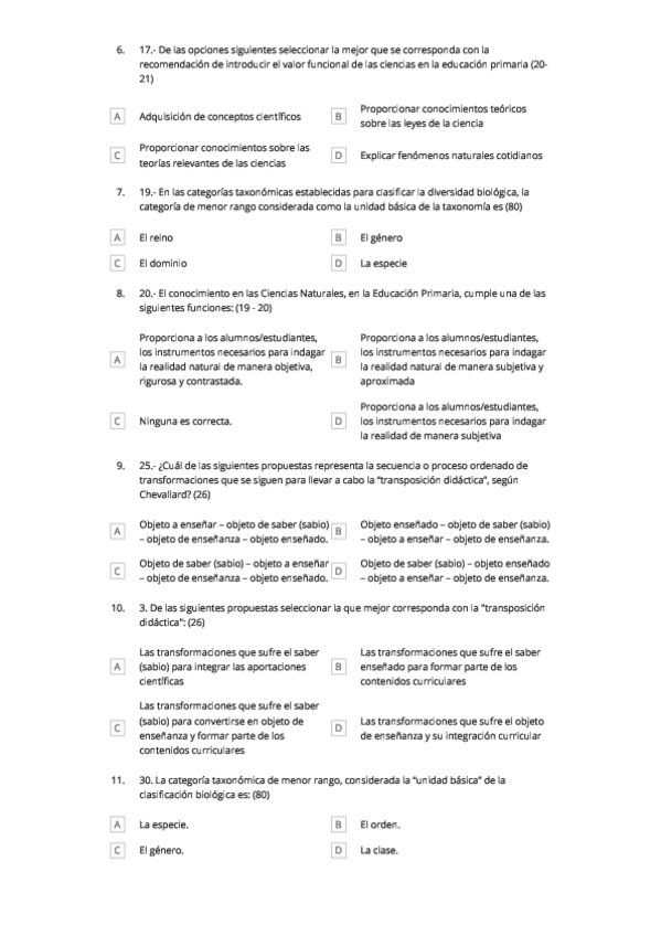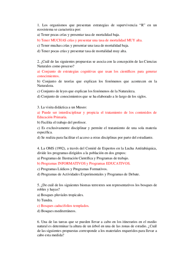 He publicado nuevos examenes de 3º Didáctica de las Ciencias Naturales y de la Educación Para la Salud, Biodiversidad y entorno: QuizzizNaturales163ConRespuestas.pdf
