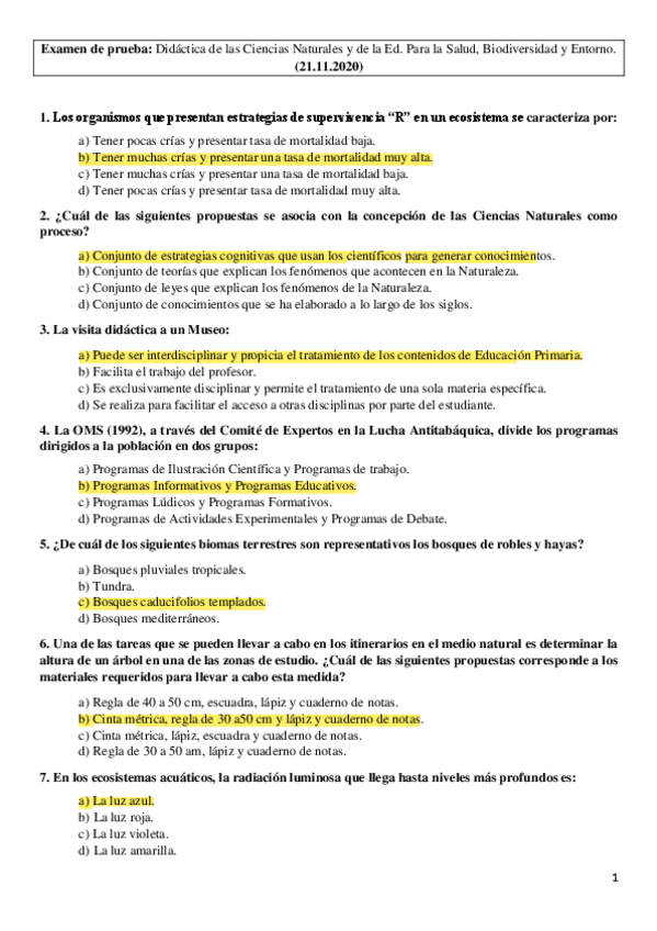 He publicado nuevos examenes de 3º Didáctica de las Ciencias Naturales y de la Educación Para la Salud, Biodiversidad y entorno: 1EXAMEN21nov20solucionado.docx