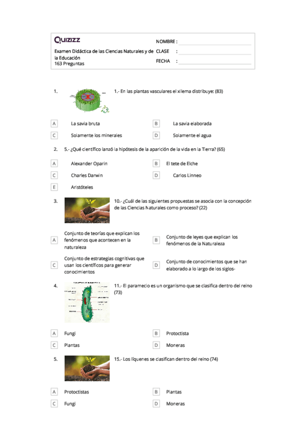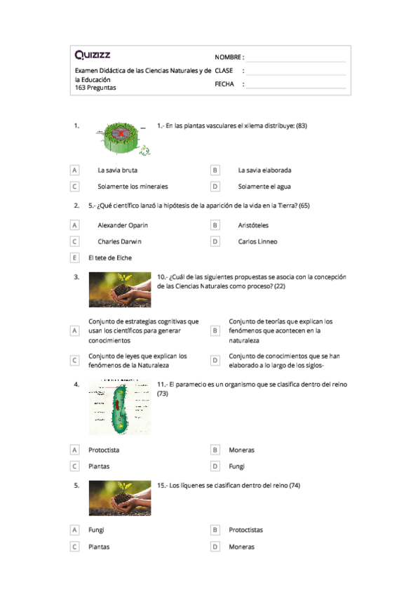 He publicado nuevos examenes de 3º Didáctica de las Ciencias Naturales y de la Educación Para la Salud, Biodiversidad y entorno: QuizzizNaturales163.pdf