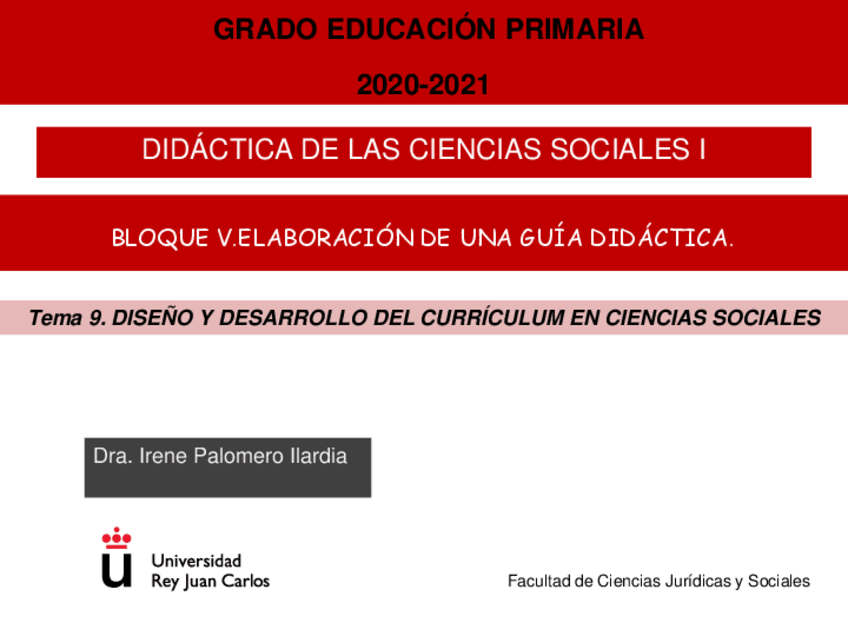 TEMA 9. DISEÑO Y DESARROLLO DEL CURRÍCULUM EN CIENCIAS SOCIALES