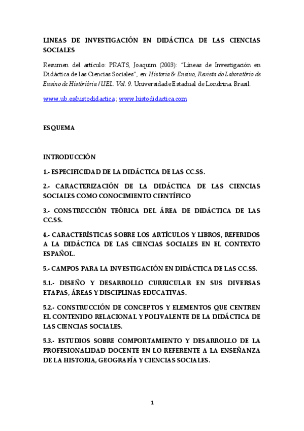 He publicado nuevos apuntes de 3º Didáctica de las Ciencias Sociales: ResumenArticulo-PratsLineas-de-Investigacion-en-Didactica-de-las-Ciencias-Sociales.pdf