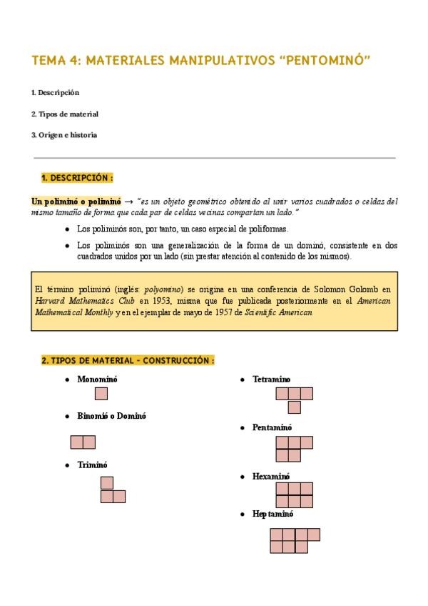 He publicado nuevos apuntes de 4º Didáctica de las Matemáticas: BLQ-3-TEMA-4--MATERIALES-MANIPULATIVOS--PENTOMINO---1.pdf