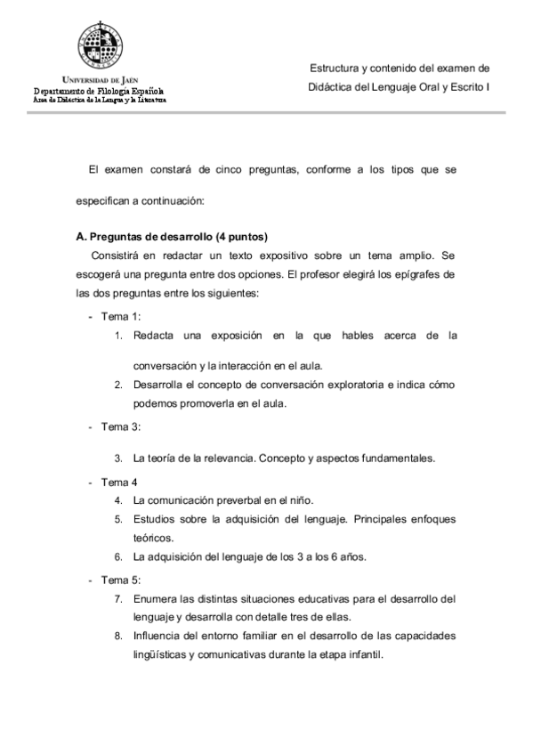 He publicado nuevos examenes de 1º Didáctica del lenguaje oral y escrito I: Modelo-examen-temas-1-al-5.pdf