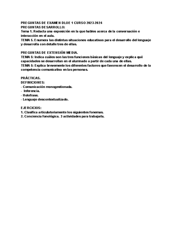PREGUNTAS DE EXAMEN DLOE 1 CURSO 2023-2024