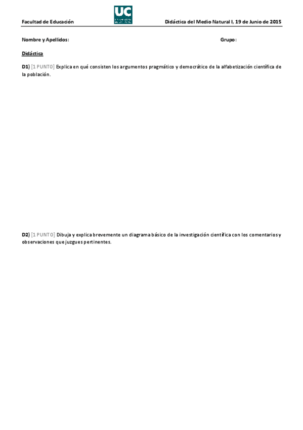 He publicado nuevos examenes de 3º Didáctica del Medio Natural I: examendmn1junio2021-Resuelto.pdf