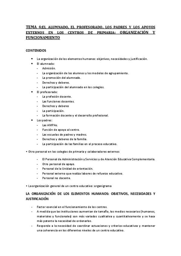 He publicado nuevos apuntes de 1º Didáctica General y Organización del Centro Escolar: TEMA 4 El alumnado el profesorado los padres y los apoyos externos en los centros de primaria.pdf