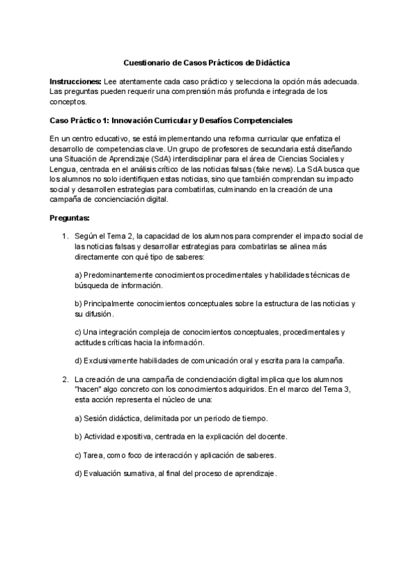 Examen didáctica de casos prácticos. 1ºAño, 2º cuatri