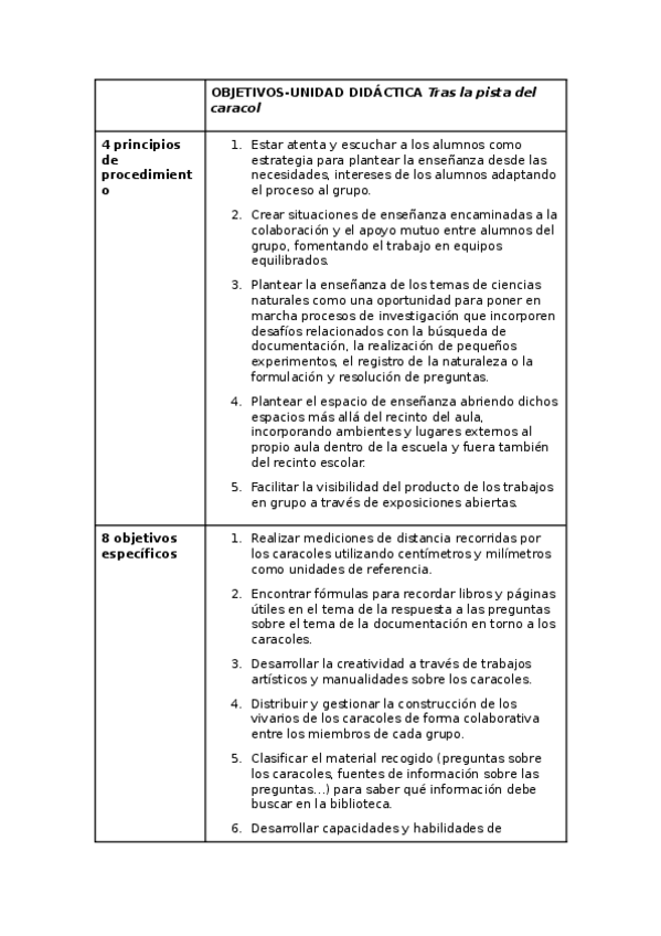 Práctica de la unidad didáctica "Tras la pista del caracol"