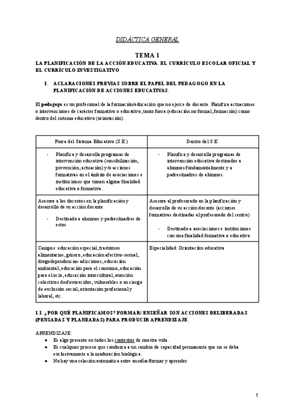 Resumen tema 1 didáctica general donde se encuentran integrados apuntes de clase