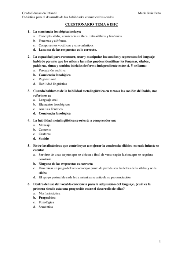 Cómo suelen ser los cuestionarios de Teresa de Didactica para el desarrollo de las habilidades comunicativas orales?