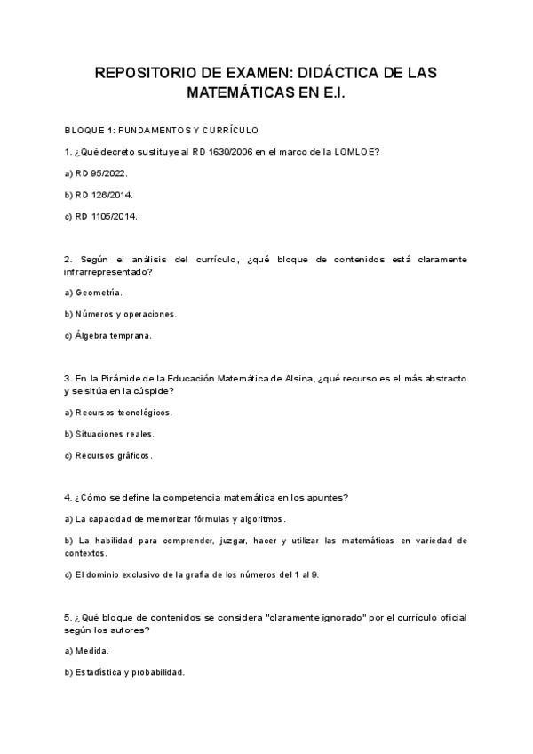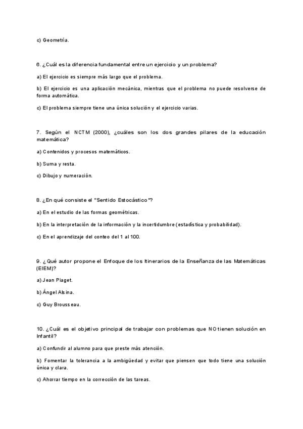 Repositorio de test estilo examen de Didáctica para el Desarrollo del Pensamiento Lógico-Matemático en Educación Infantil