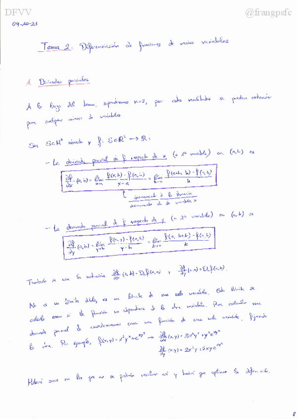 He publicado nuevos apuntes de 2º Diferenciación de Funciones de Varias Variables: Teoría DFVV