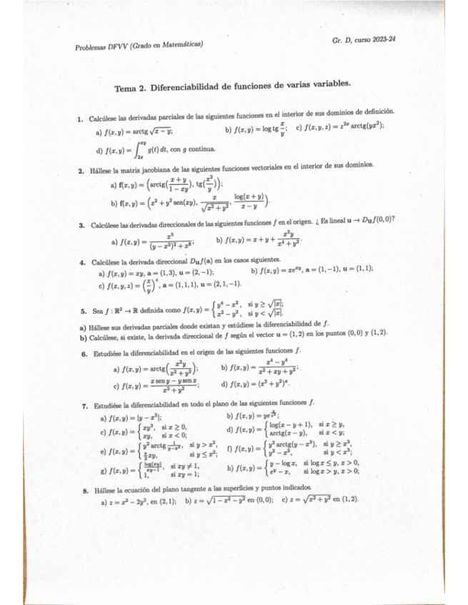 He publicado nuevos ejercicios de 2º Diferenciación de Funciones de Varias Variables: DFVV-hoja1-24-25.pdf