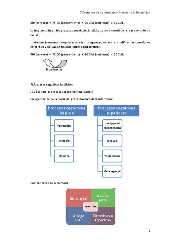 He publicado nuevos apuntes de 4º Dificultades de Aprendizaje y Atencion a la Diversidad: TEMA 2 Procesos cognitivos implícitos en las DA.pdf