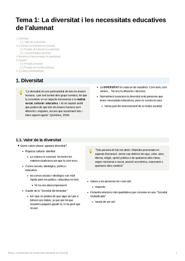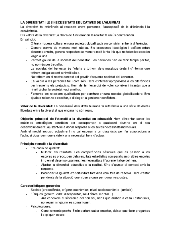 He publicado nuevos apuntes de 2º Dificultades de Aprendizaje y Trastornos de Desarrollo: Tema 1 La diversitat i les necessitats educatives de l'alumnat.pdf