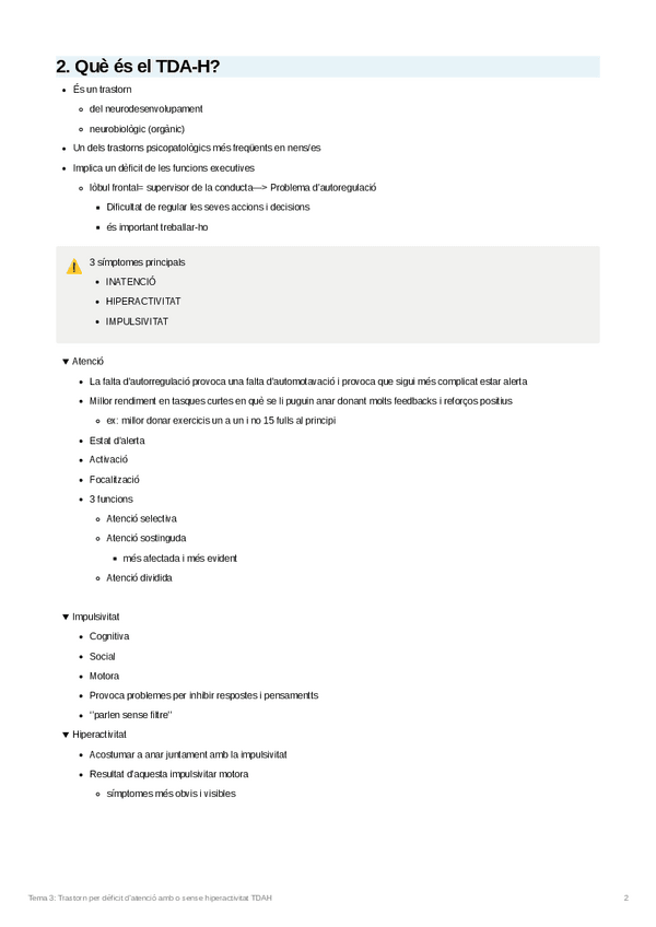 He publicado nuevos apuntes de 2º Dificultades de Aprendizaje y Trastornos de Desarrollo: Tema 3 Trastorn per dèficit d'atenció amb o sense hiperactivitat TDAH.pdf