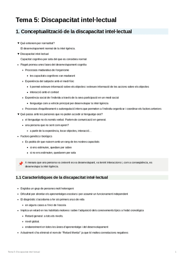 He publicado nuevos apuntes de 2º Dificultades de Aprendizaje y Trastornos de Desarrollo: Tema 5 Discapacitat intellectual.pdf
