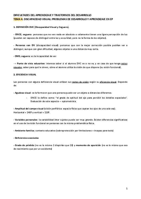 He publicado nuevos apuntes de 2º Dificultades de Aprendizaje y Trastornos del Desarrollo: TEMA 4 DISCAPACIDAD VISUAL.pdf